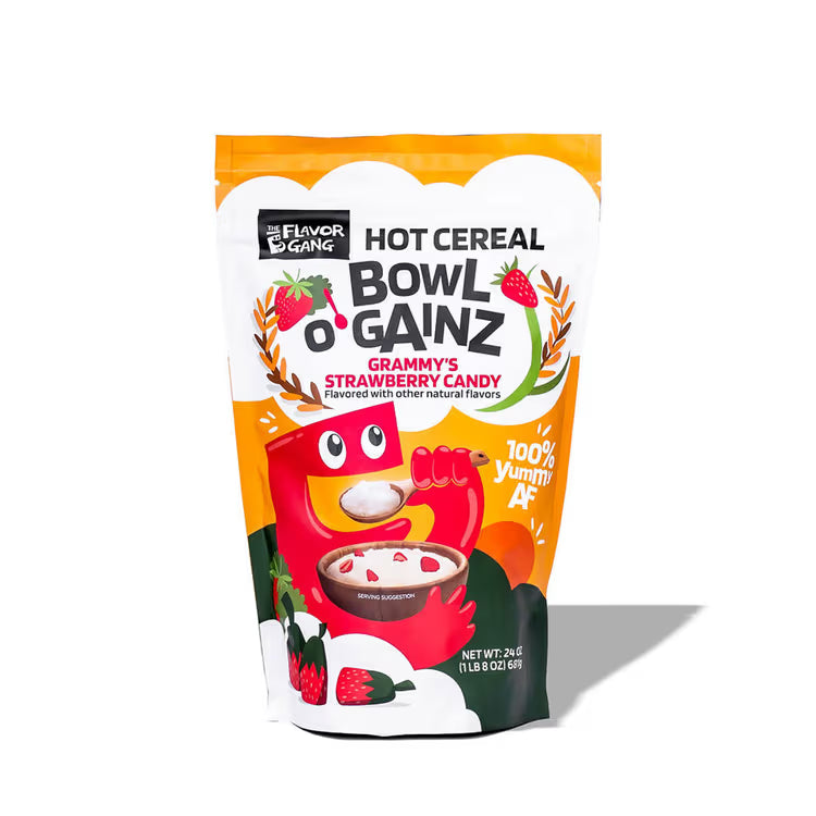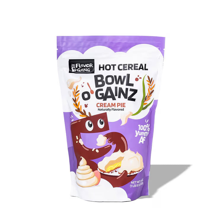 Bowl O' Gainz by The Flavor Gang is a smooth, rice-based hot cereal designed for flavour, versatility, and everyday enjoyment. It can be prepared warm like oatmeal, used in creative recipes, or incorporated into your favourite kitchen routines. With a wide range of dessert-inspired flavours, it brings fun and variety to breakfast, snacks, and baking.